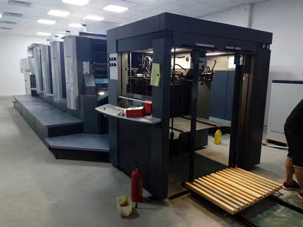本公司開發(fā)生產(chǎn)了一種印刷機預裝紙裝置,適用于國內(nèi)外各品牌印刷機,用于印刷機進紙的可垂直升降的進紙托盤,其特征在于: 在印刷機進紙托盤上安裝導軌,進紙托盤上導軌與地面安裝的導軌對接,所述導軌和所述進紙托盤之間還設(shè)置一個垂直于所述進紙托盤的縱長的定位尺。新型的印刷機預裝紙裝置通過導軌可以精確定位小平板車,再通過定位尺對其上的紙張進行定位,從而快速準確地對小平板車上的紙張進行定位作業(yè)。本實用新型的印刷機預裝紙置具有結(jié)構(gòu)簡單,高效,定位準確等優(yōu)點。