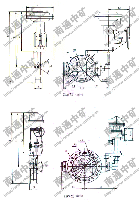 ZSCW-0.6k/b型氣動調節蝶閥外形尺寸: