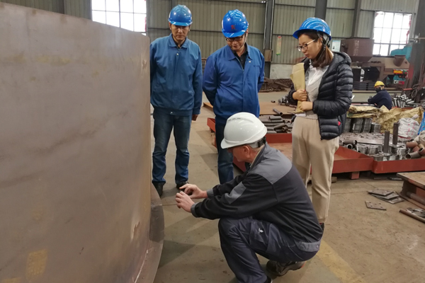 Jan Magleby Petersen與齊躍重點關注我司生產車間制作現場的圖紙和工藝文件是否符合合同要求,對部分設備的尺寸控制、焊縫、平整度、表面防銹處理、漆膜厚度等項目進行抽樣檢測,檢測之后Jan Magleby Petersen與齊躍對我公司產品質量表示肯定,肯定了我公司在質量控制和細節處理方面的嚴苛要求。