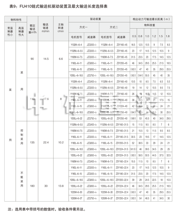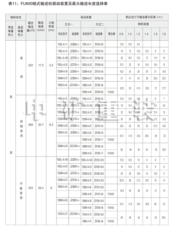 用戶應(yīng)根據(jù)被輸送物料的性能、狀態(tài)(如:磨琢性、料溫、物料粒度)等因素選擇。對于輸送 水泥生熟原料和成品粉料的適宜鏈速可參照表3。其它與水泥性能和狀態(tài)相近的物料也可參照此表。