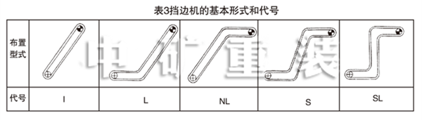 DJ、JB波狀檔邊帶式輸送機的基本布置型式和代號見表3。這是五種基本的布置型式,實際上,由于檔邊機采用了波狀檔邊輸送帶和改向輪及改向輥組等過度裝置,檔邊機可以在同一垂直面內(nèi)多次彎曲,實現(xiàn)更為復(fù)雜的布置型式。