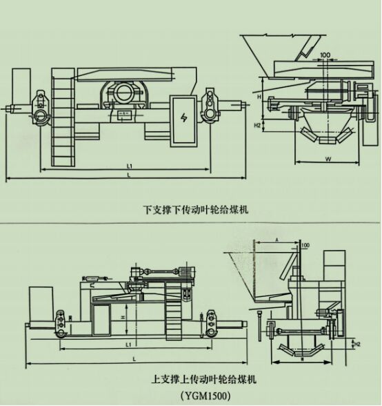 葉輪給煤機(jī)用于火力發(fā)電廠縫隙式煤溝,它可沿煤溝縱向軌道行走或停在一處將煤定量、均勻、連續(xù)地?fù)艿捷斆浩稀1竟粳F(xiàn)生產(chǎn)的葉輪給煤機(jī)按傳統(tǒng)方式分為上傳動(dòng)和下傳動(dòng),按結(jié)構(gòu)型式可分為橋式和門(mén)式,按給料方式可分為單側(cè)和雙側(cè)兩種。廣泛用于煤炭、采礦、冶金、建材、化工等行業(yè)。